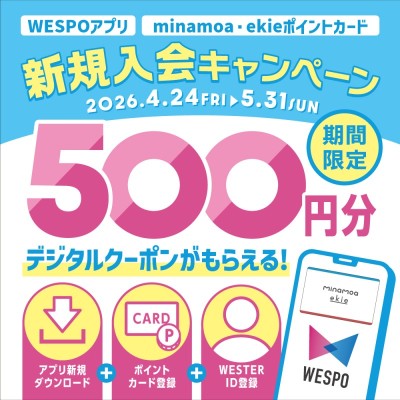 WESPOアプリ『minamoa・ekieポイントカード』新規入会キャンペーン