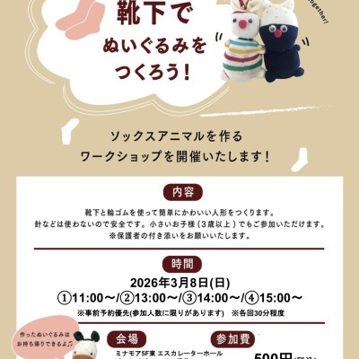 【靴下屋】📢ワークショップのお知らせ🧸