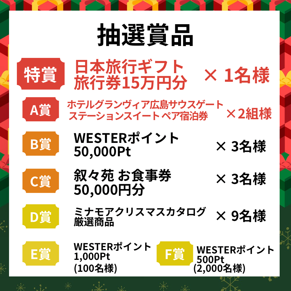 ※キャンペーンへの参加にはminamoa・ekieポイントカード・WESTER IDの登録が必要です。(WESTER IDの登録はキャンペーン期間中なら購入後でもOK)