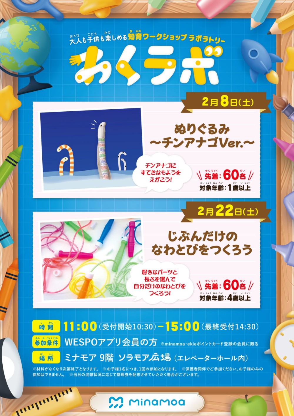 WESPOアプリをご提示いただくと、対象年齢のお子様がワークショップにご参加いただけます!