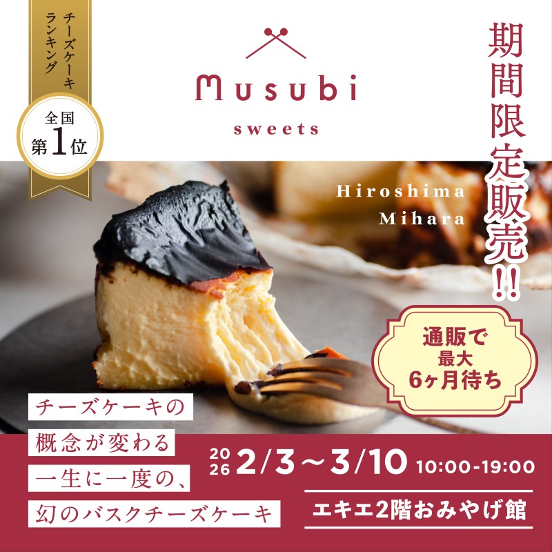 他のバスクチーズケーキとは一味も二味も違うむすびのバスクチーズケーキを是非一度お召し上がり下さい。