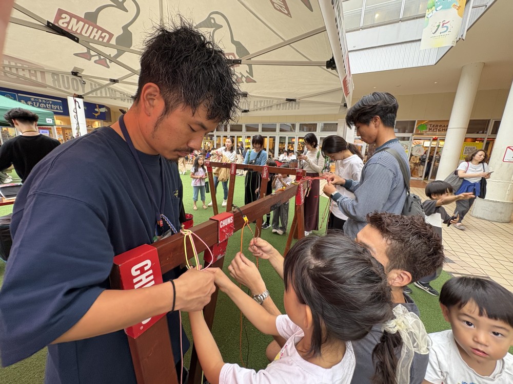 人気のアウトドアブランド「CHUMS」の“オリジナルブレスレット”“マルチハンドル”作りのワークショップを開催。お好きなヒモを組み合わせてオンリーワンのブレスレット作りが楽しめます。