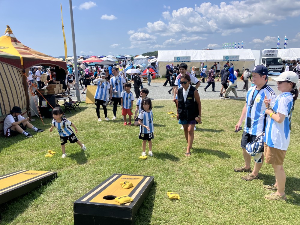 アメリカ発祥のスポーツ「コーンホール」を体験!ボードの穴を狙って、袋を投げるだけ!3投中1投でも入ればノベルティをプレゼント!