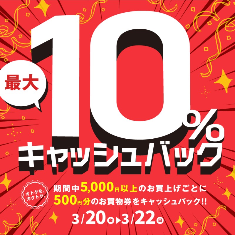 税込5,000円以上お買上げごとに500円分のお買物券をキャッシュバックいたします!