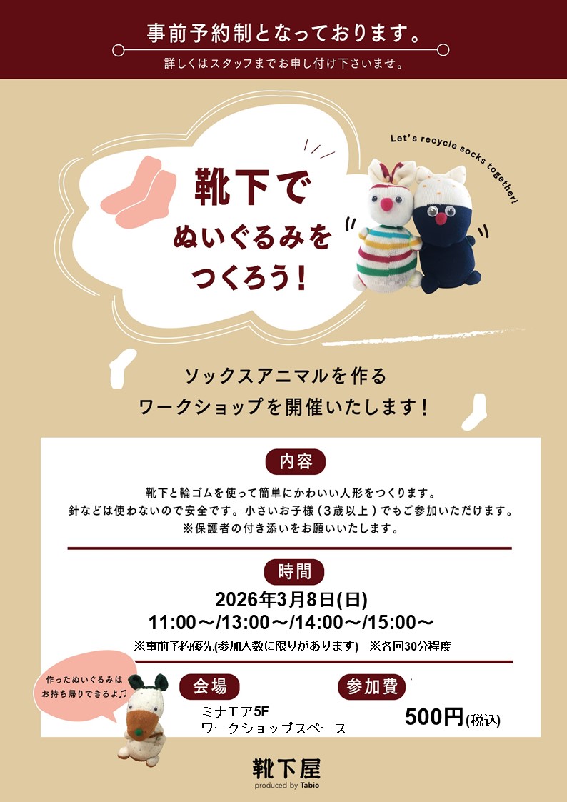 * 靴下屋 「ぬいぐるみ作り体験」