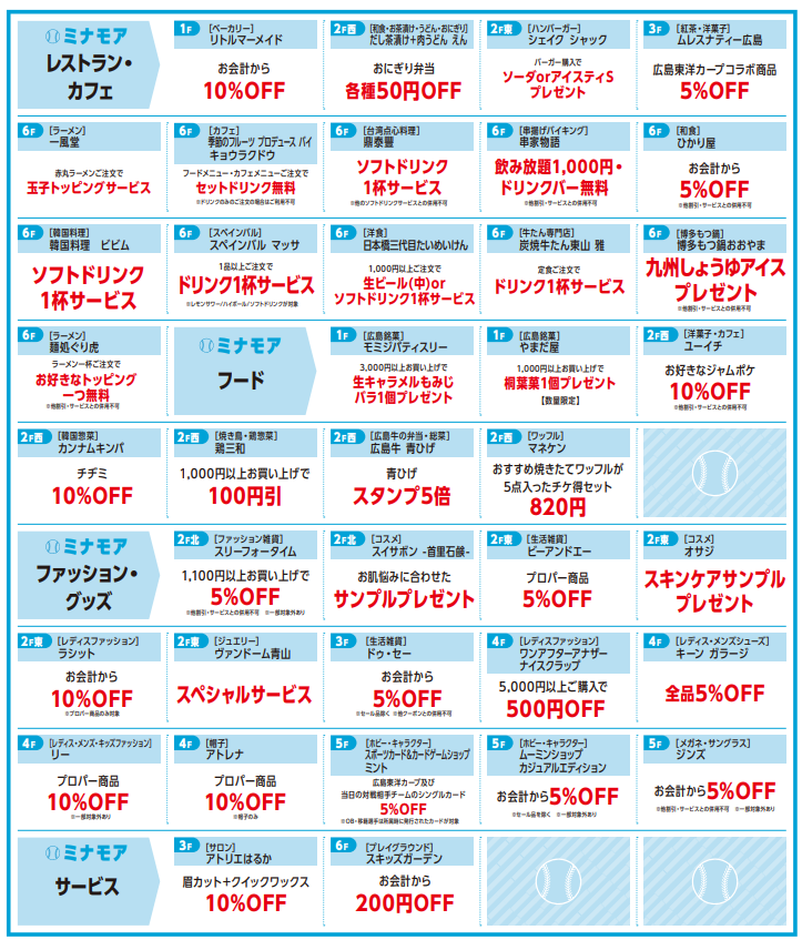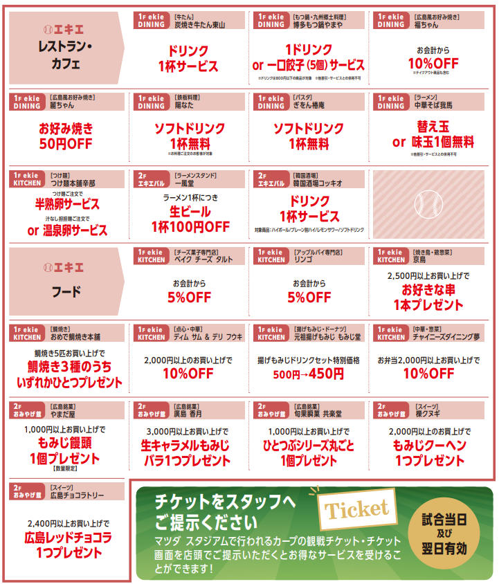 カープ×minamoa・ekie チケ得サービス ~試合前後はお得にグルメ・ショッピング~