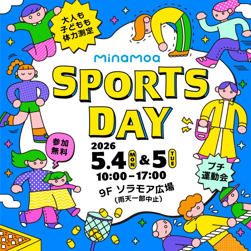 ゴールデンウィークのソラモア広場では、大人も子供も思いっきり運動ができるイベントを開催!