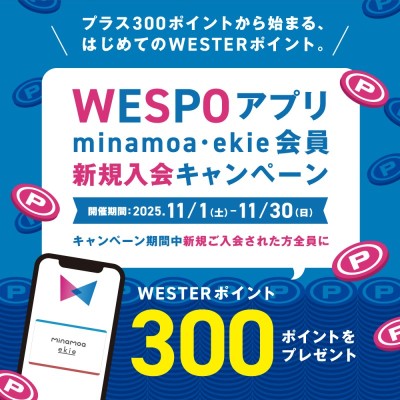 WESPOアプリ『minamoa・ekieポイントカード』新規入会キャンペーン