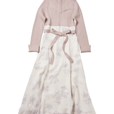 【MERCURYDUO】フラワードッキングロングスリーブワンピース 【クリスマスカタログ5P掲載】