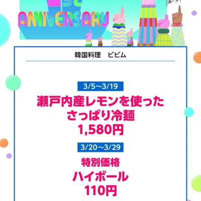 【韓国料理 bibim’ 】【韓国料理 bibim’】ミナモア1周年フェア