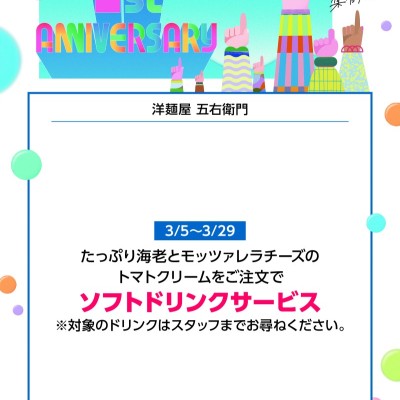 【洋麺屋 五右衛門】【洋麺屋 五右衛門】ミナモア1周年フェア