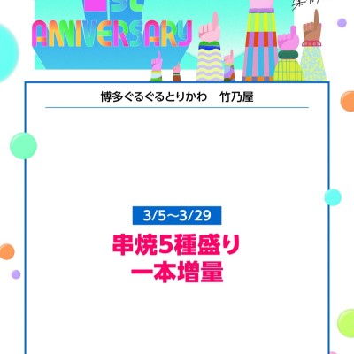 【博多ぐるぐるとりかわ 竹乃屋】【博多ぐるぐるとりかわ 竹乃屋】ミナモア1周年フェア