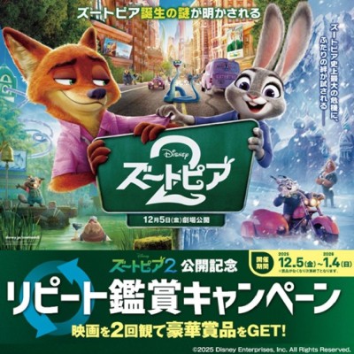 【MOVIX広島駅】12/5(金)公開「ズートピア2」リピート鑑賞キャンペーン