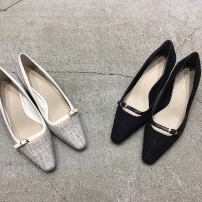 【A de Vivre】チェックナロースクエアトゥパンプス