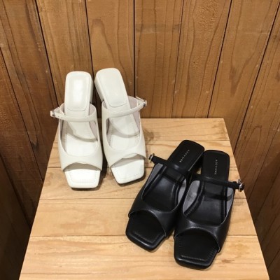 【A de Vivre】レザースクエアトゥミュールサンダル