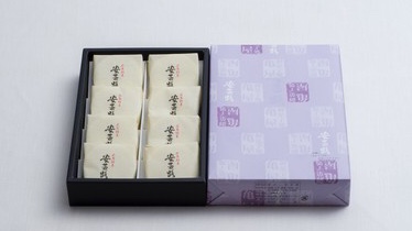 口溶けに良いこし餡をほんのり甘い求肥で包み、薄皮せんべいではさみました。