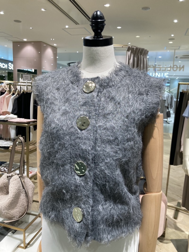 ふわふわとした素材感が可愛いベストです。