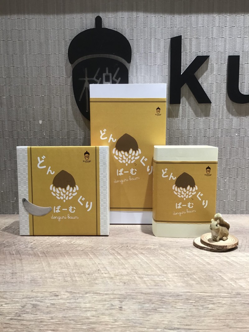 どんぐりの王様「くぬぎ」を食用に安全加工して生地に練りこんだバームクーヘンです。