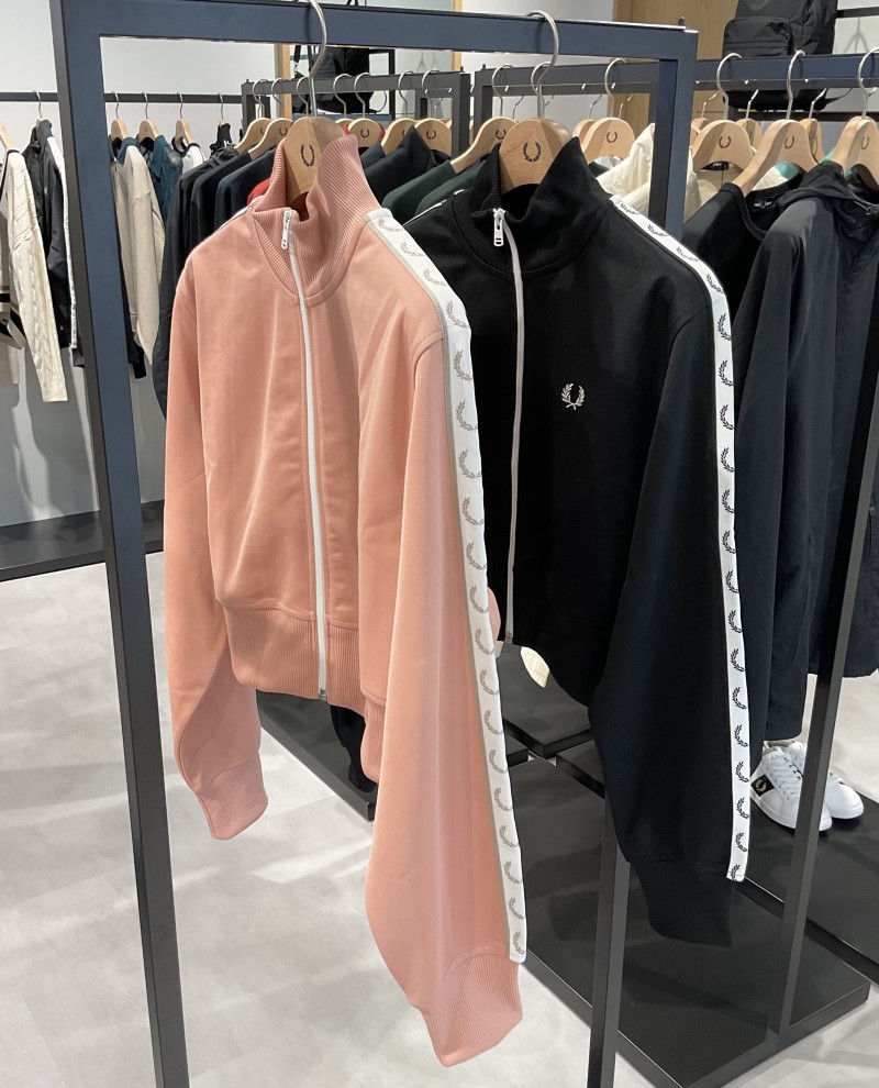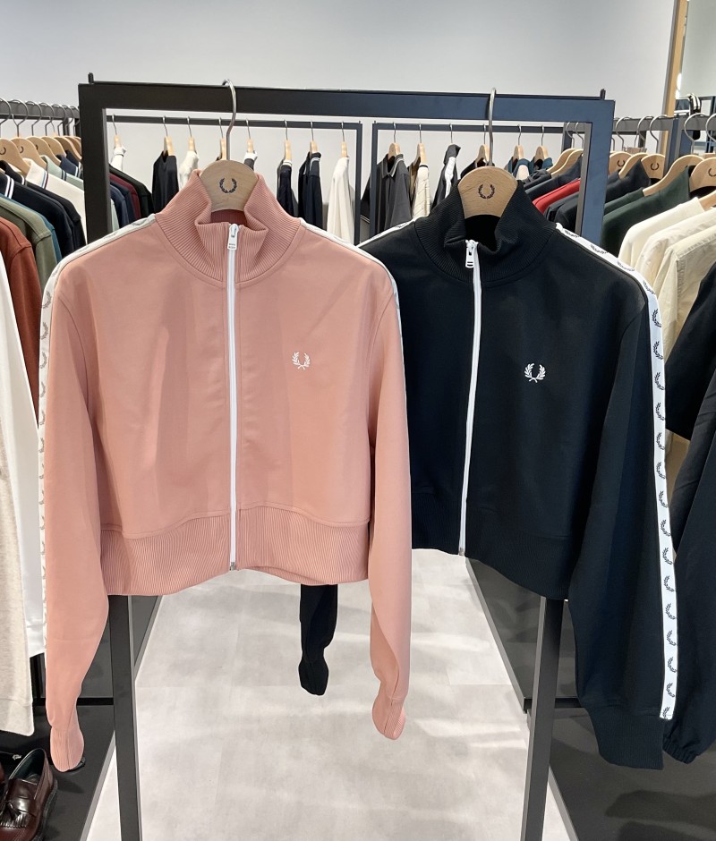こちらのトラックジャケットはクロップド丈になっており、デニムやスカートにも合わせやすく着回ししやすくなっております!また、腕の部分にあるロゴのテープラインがフレッドペリーらしい商品です!