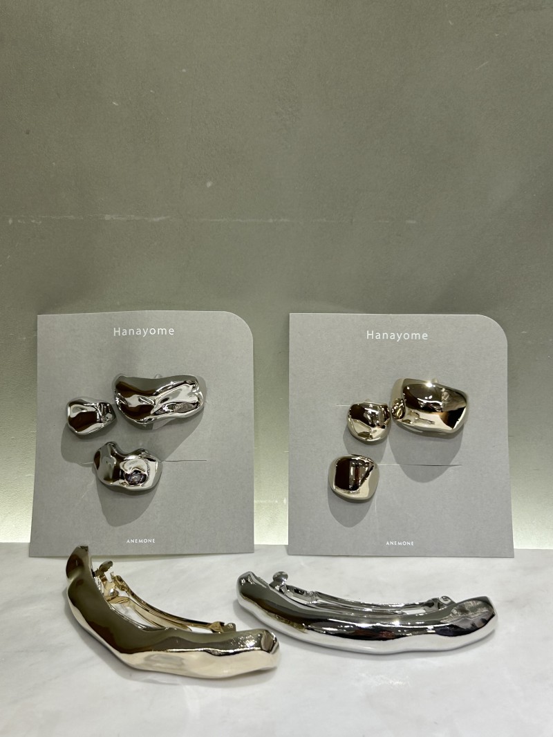 シャープな輝きを放つメタルのポニーフック、大ぶりの煌めくメタルのバレッタ、それぞれ華やかなうしろ姿に仕上げてくれます𓂃 𓈒𓏸