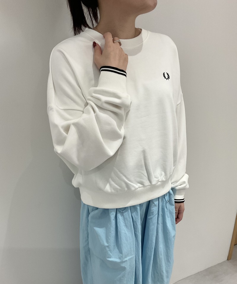 こちらのスウェットは、袖付け位置を通常よりも腕側に意図的に落としたデザインのドロップショルダーになっています!ゆったりとしたシルエットで、丸く柔らかな印象になり、お洒落にスウェットを楽しんでいただける商品です!