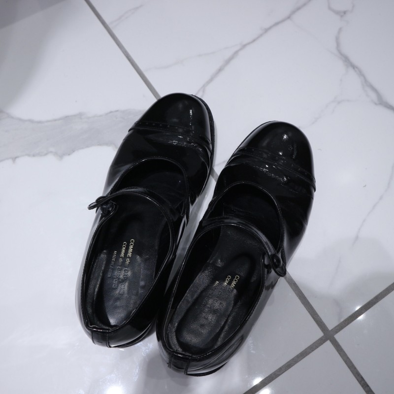 3点目はCOMME des GARÇONS COMME des GARÇONSのメリージェーンパンプスです。淡いコーデに足元を黒くすることででコーデが締まります!
