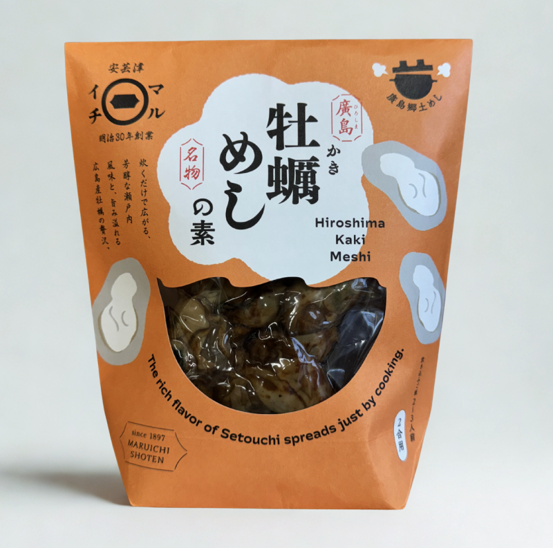 廣島牡蠣めしの素 広島県産の牡蠣を贅沢に使用。 ふっくらとした牡蠣の粒と、旨みが染み込んだごはんが広がる贅沢な一品です。 2合のお米と炊き込むだけで、瀬戸内の豊かな風味をご家庭でお楽しみいただけます。