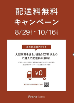 家具の購入をご検討されている方は、是非この機会に配送料無料キャンペーンをご利用くださいませ。