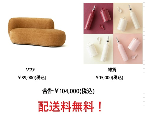 ソファ:¥89,000(税込) + 雑貨:¥15,000(税込) = 合計104,000(税込)