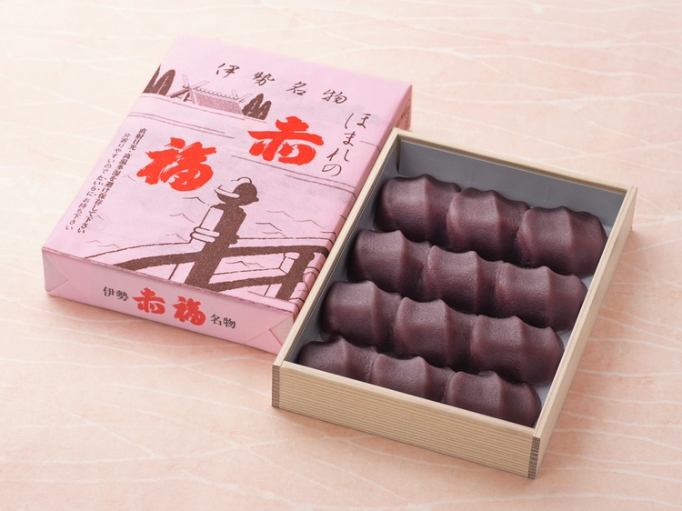 特徴的な形は、伊勢神宮の神域を流れる五十鈴川のせせらぎをかたどり、餡につけた三筋の形は清流、白いお餅は川底の小石を表しています