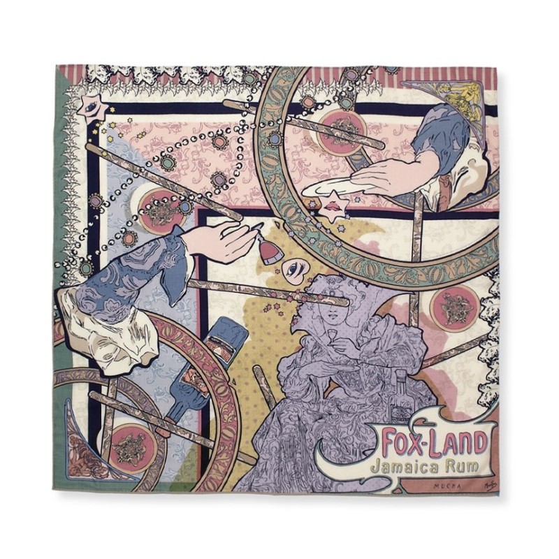 【重厚感のあるFOX-LAND Jamaica Rumのアートが楽しめる大判ハンカチ】
