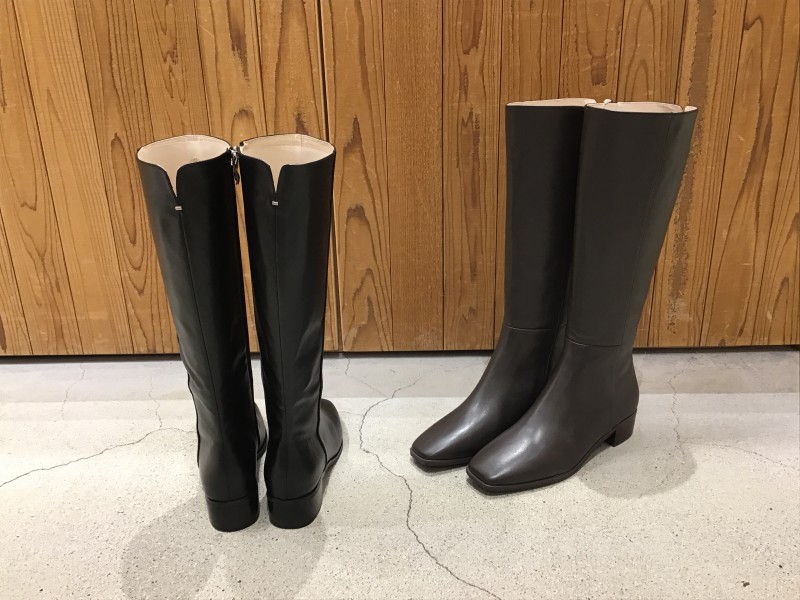 スクエアトゥに4cmヒールを合わせたシンプルなレザーロングブーツ☆
