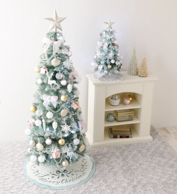 今年は新カラーとして、ピンクのリボンやトナカイ、シェルなどのオーナメントがアクセントとなり、まるで雪をまとったようなロマンティックなライトグリーンが登場しました🦌🎀