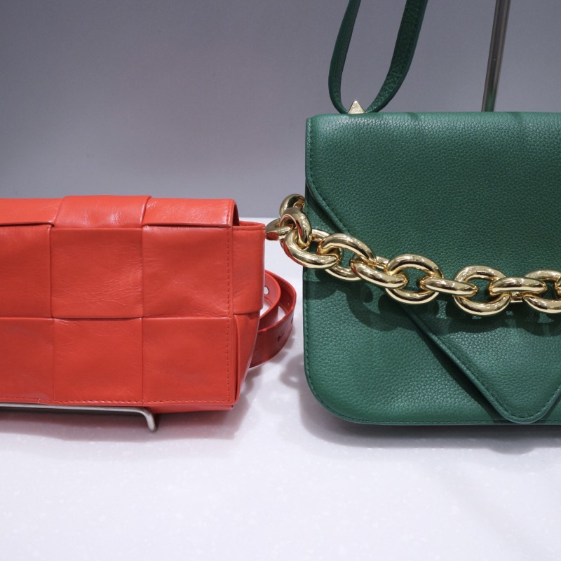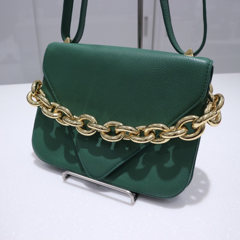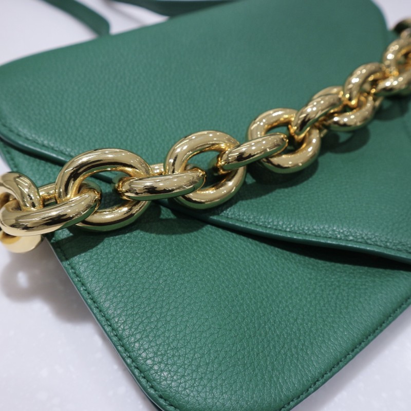 2点目のショルダーバッグは、ボッテガのブランドカラーであるグリーンと、存在感のある煌びやかなゴールドのチェーンがなんともスタイリッシュで上品な雰囲気ですね。