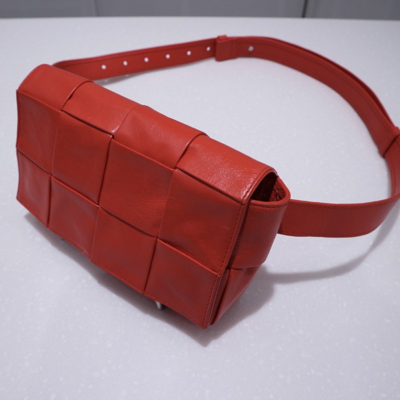 1点目の赤色のベルトバッグは、そんなボッテガを象徴するイントレチャートというデザインのバッグになります。交互に重ねられた革のデザインが特徴で、一度は見たことがある方も多いのではないでしょうか?
