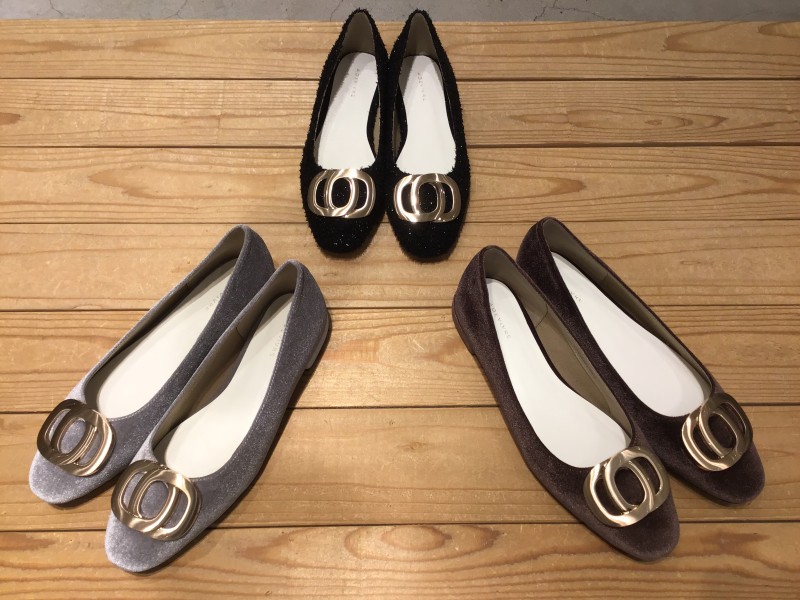 ソフトベロア素材を使用した華やかなフラットパンプス♪
