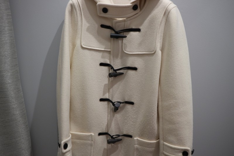 3点目は、DRESSTERIORの白いダッフルコートです。こちらもウール100%で、冬の良い相棒となってくれそうですね。