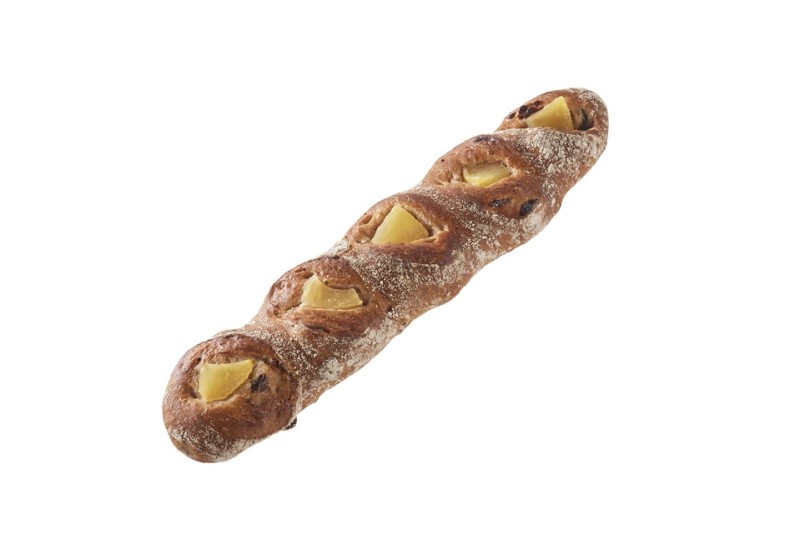 ライ麦粉、石臼挽き粉入りの生地に混ぜ込み、芸北りんごプレザーブをトッピングして焼き上げました。
