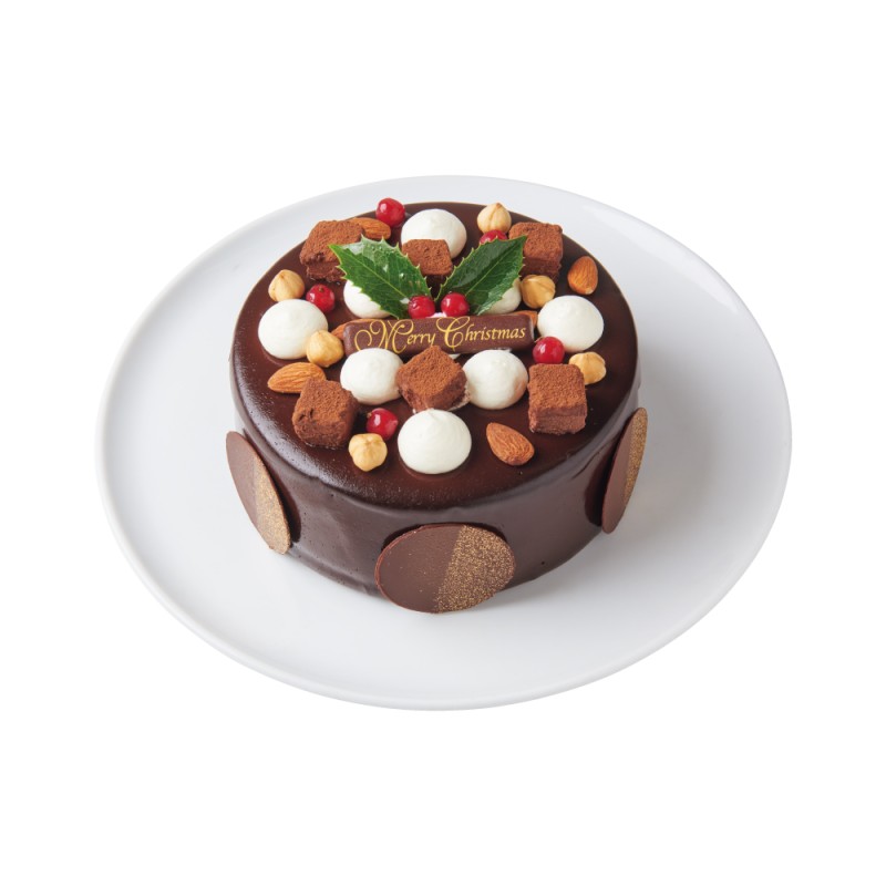 チョコムースの中にヘーゼルナッツ風味の生チョコを使用した濃厚チョコレートケーキ。