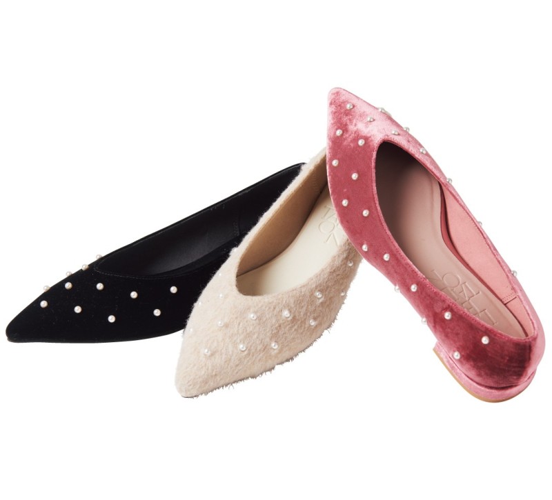 小粒のパールスタッズを散りばめたフラットシューズ。