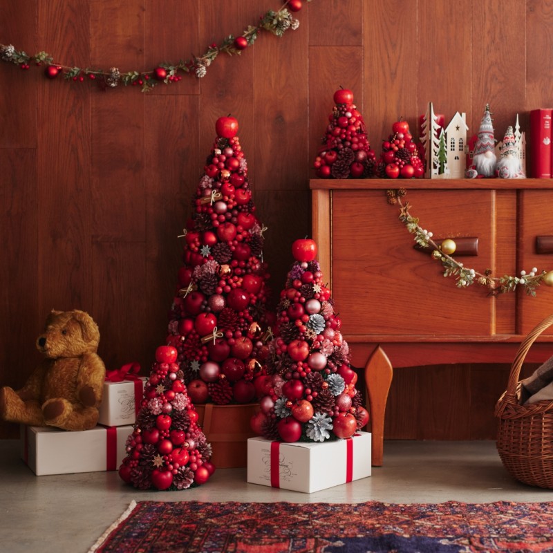 真っ赤なリンゴをモチーフにしたオリジナルのクリスマスツリー。