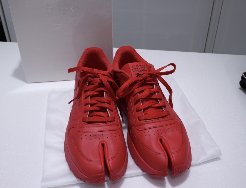 こちらはReebokとのコラボアイテムで、クラシックレザーシリーズの足先がタビの形になった、アイコニックなアイテムです。