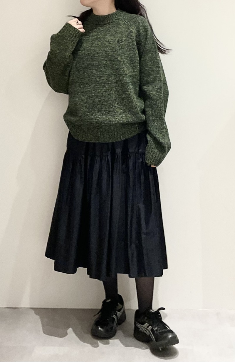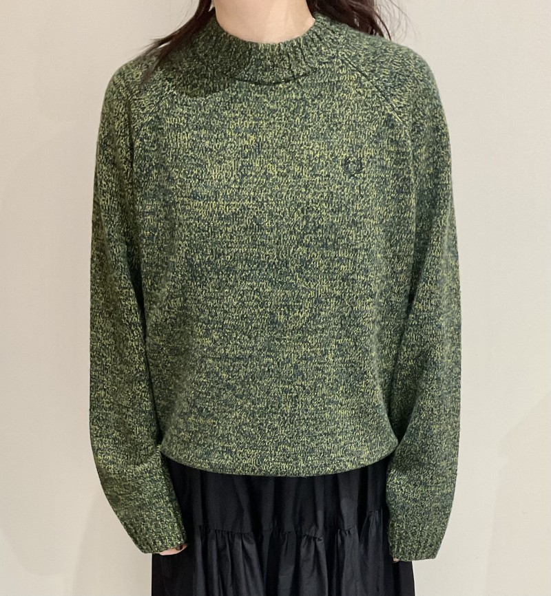 今期のキーカラーを3色使用した混紡糸で、独特なメランジカラーがポイントのニットです。丈感も短く女性らしい、可愛いデザインになっております💕