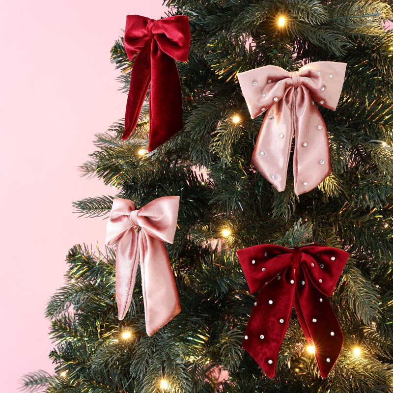 ベロア生地でできたリボンのオーナメントが6個入ったセットです。