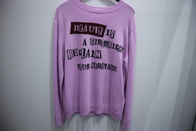 1点目はVALENTINOのピンクのニットになります。表面には可愛らしい文字プリントが施されています!また、そこまで分厚くないのでとても着やすいです!コートのインナーに差し色としてとてもおすすめです!カシミヤ30%入っていて、着心地がいいのでついつい着たくなる1着です!
