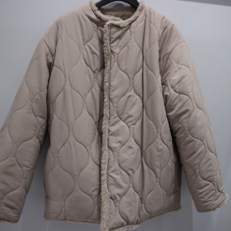 キルティングジャケットはマットな質感で、カジュアルな印象のアイテムです。内側のファーのおかげでカジュアルなコーディネートでも上品さを忘れないデザインです。