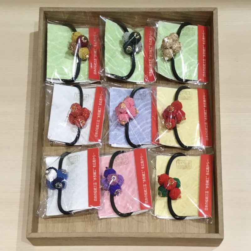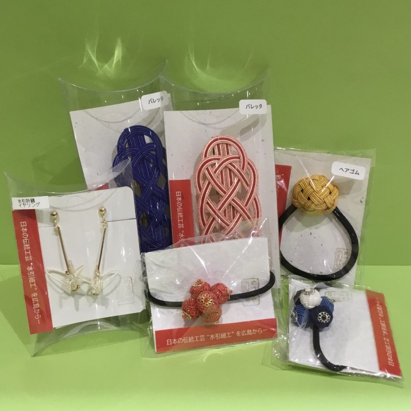 色とりどりの水引で作られたアクセサリーは、全て手作りです。