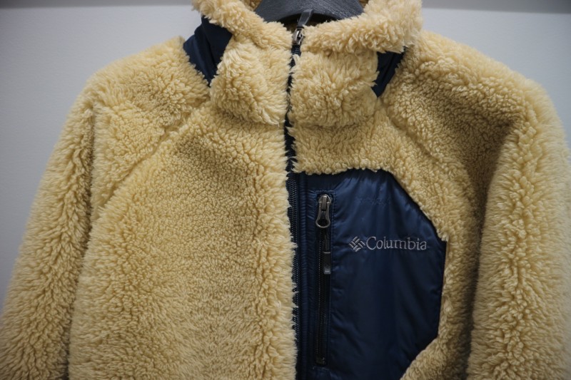2点目はColumbia のフリースです。こちらは1点目にご紹介したフリースよりも若干生地が厚めでより暖かく過ごせそうです!シルエットが簡単に変えられるドローコード付きなのも嬉しいポイントですね!