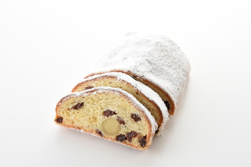 レーズン、シトロンピール、オレンジピール、マジパン(アーモンドペースト)を混ぜ込んでしっとりと焼き上げました。
