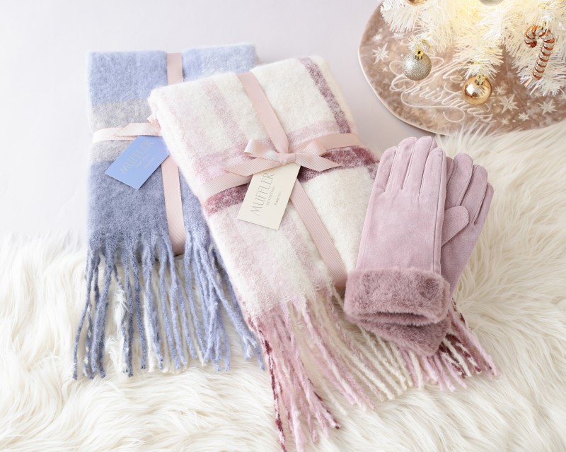 マフラーはファッションに合わせやすいワンカラーと、コーディネートのワンポイントになるチェック柄の2種類🧣✨